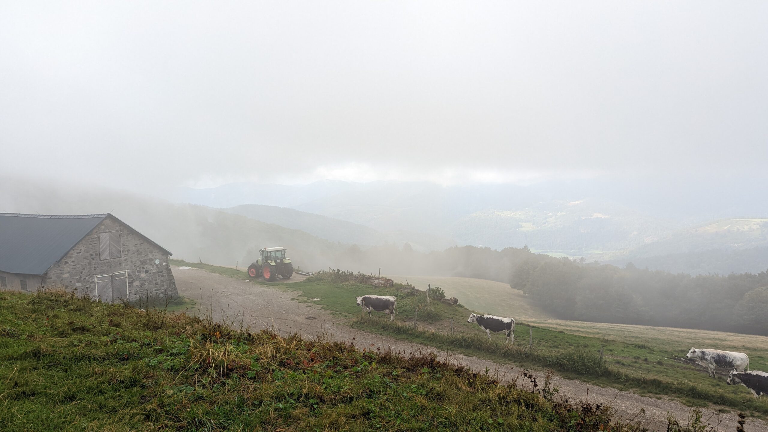 Am Morgen war es zwar trocken, aber windig und neblig. Wir entschlossen uns, die Route des Crêtes (Vogesenhochstraße) trotzdem weiterzufahren und den Großen Belchen zu besuchen.