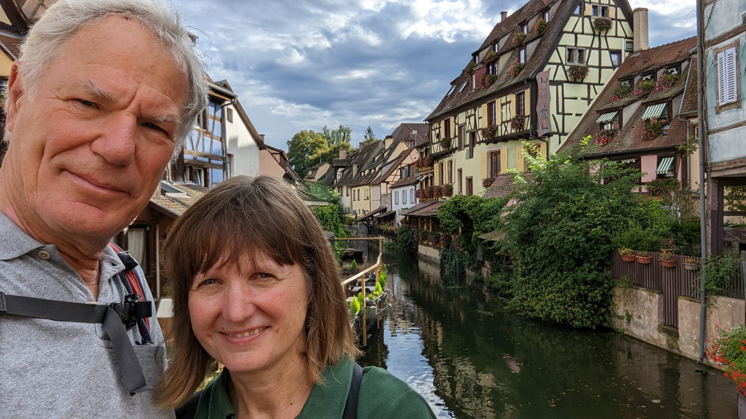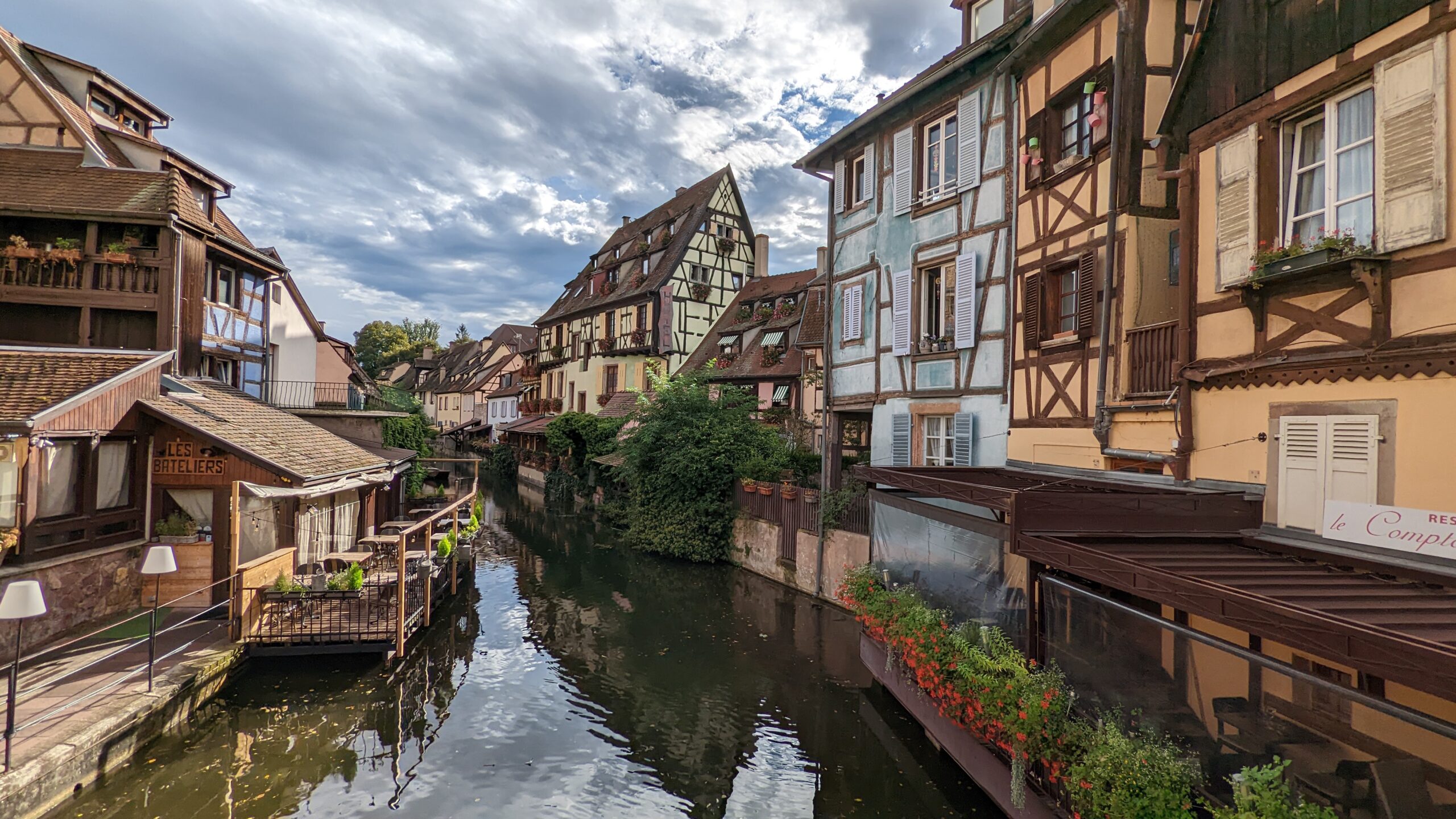 In Colmar angekommen machten wir Lagebesprechung und entschieden uns, den Campingplatz abzusagen und stattdessen auf einen Wohnmobilstandplatz zu fahren, der zwar weniger Service hat, aber dafür näher an der Altstadt liegt. Wasser hatten wir noch genug, Strom auch – also kein Problem.