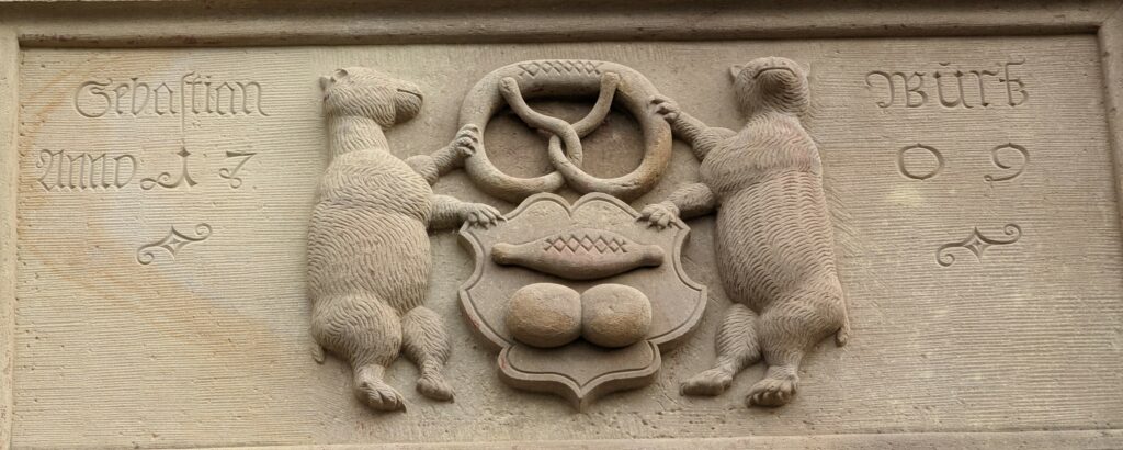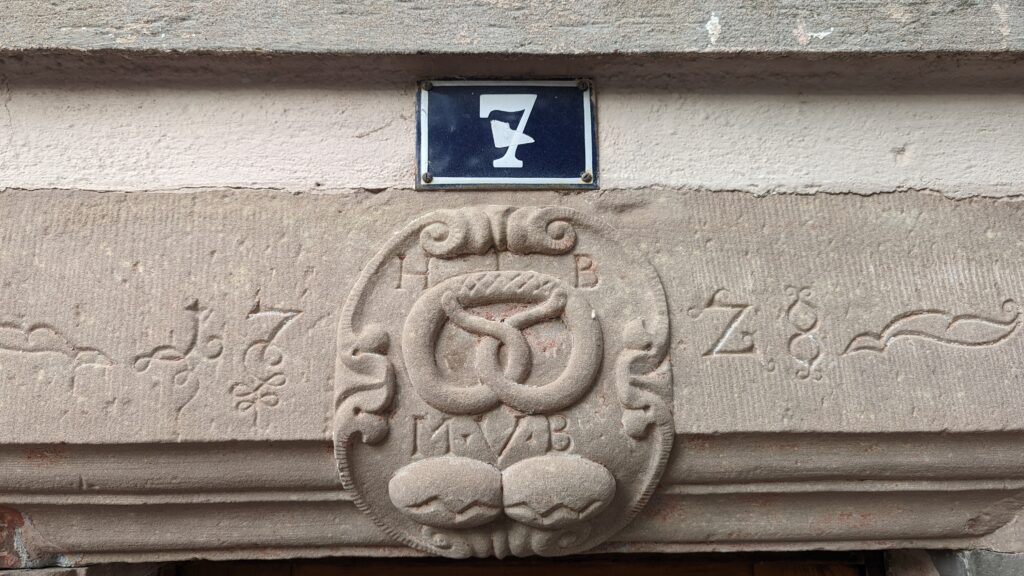 Anschließend holten wir uns in der Touristeninfo eine Beschreibung zur Städtebesichtigungstour, einem zweistündigen Spaziergang auf den Spuren des Löwen und des Riesen Schletto. Im Boden sind Tatzen mit Pfeilen eingelassen, denen man folgen muss und dabei an 24 Stationen mit den Hauptsehenswürdigkeiten von Sélestat vorbeikommt. Der Gang mit Spurensuche hat uns Spaß gemacht und wir haben dabei einiges gesehen. Zwischendurch hat es zweimal kurz geregnet, dann schien aber auch gleich wieder die Sonne. Udo hat den Stadtrundgang mit Komoot aufgezeichnet. Wer ihn virtuell mitlaufen möchte, findet hier den Link dazu: