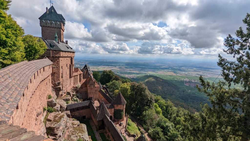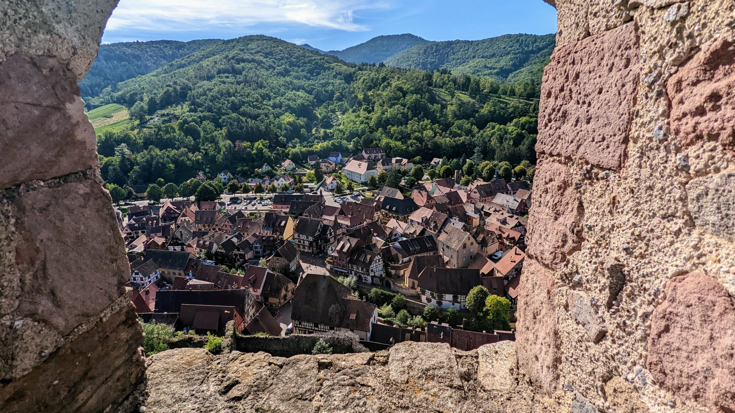 Durch die Weinberge ging es auf ausgeschilderten und meist geteerten Radwegen nach Kaysersberg. Dort fuhren wir zuerst auf die Burg, bestiegen den Turm und hatten von oben eine gute Sicht über den Ort.