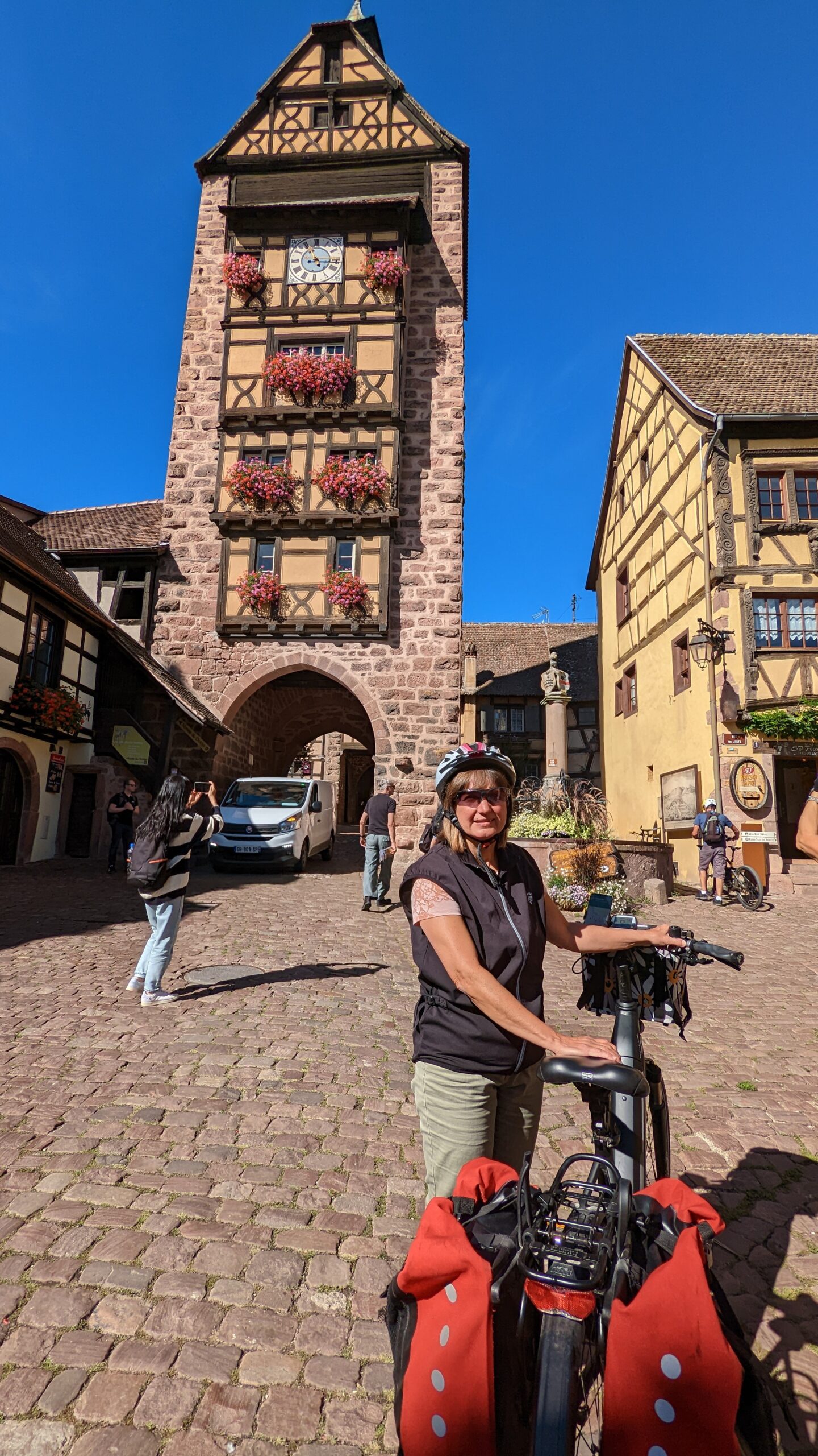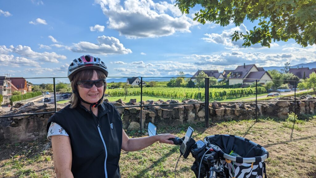 Wir ließen uns vormittags Zeit und starteten erst um 10:45 Uhr mit den Rädern zur ausgesuchten 35-km-Tour durch die wunderschönen Weinorte des Elsass bei strahlendem Sonnenschein und sommerlichen Temperaturen.