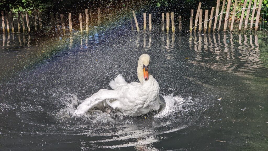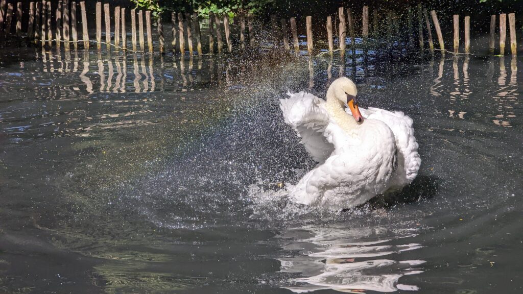 Kaum hatten wir die Stadt hinter uns gelassen, waren wir fast alleine. Nur wenige Wanderer und Radler begegneten uns noch. Unser Weg führte uns durch Hunawihr und weiter zum NaturOpark, einer Storchenaufzuchtstation und einem kleinen Tierpark für allerhand Wasservögel und Wassertiere. Es ist ganz nett gemacht, aber wir hatten uns ein bisschen mehr erwartet, vor allem um den doch stattlichen Eintrittspreis von 11 Euro pro Person.