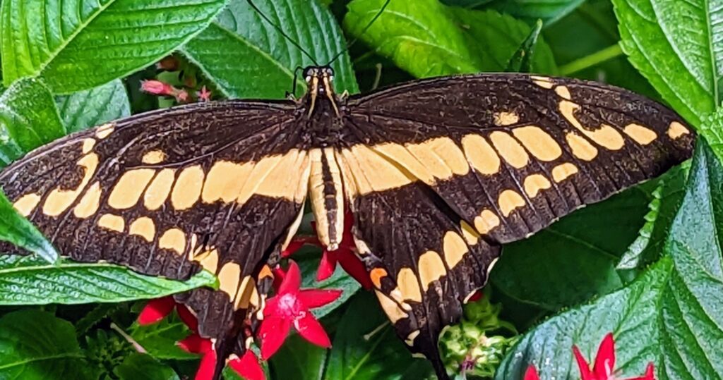 Nur wenige hundert Meter weiter befindet sich der Jardin de Papillons, ein faszinierendes Schmetterlingshaus. Das hat uns doch deutlich besser gefallen und wir bestaunten viele verschiedenen Arten von Schmetterlingen, die um uns herumflatterten, und die besonderen exotischen Pflanzen.