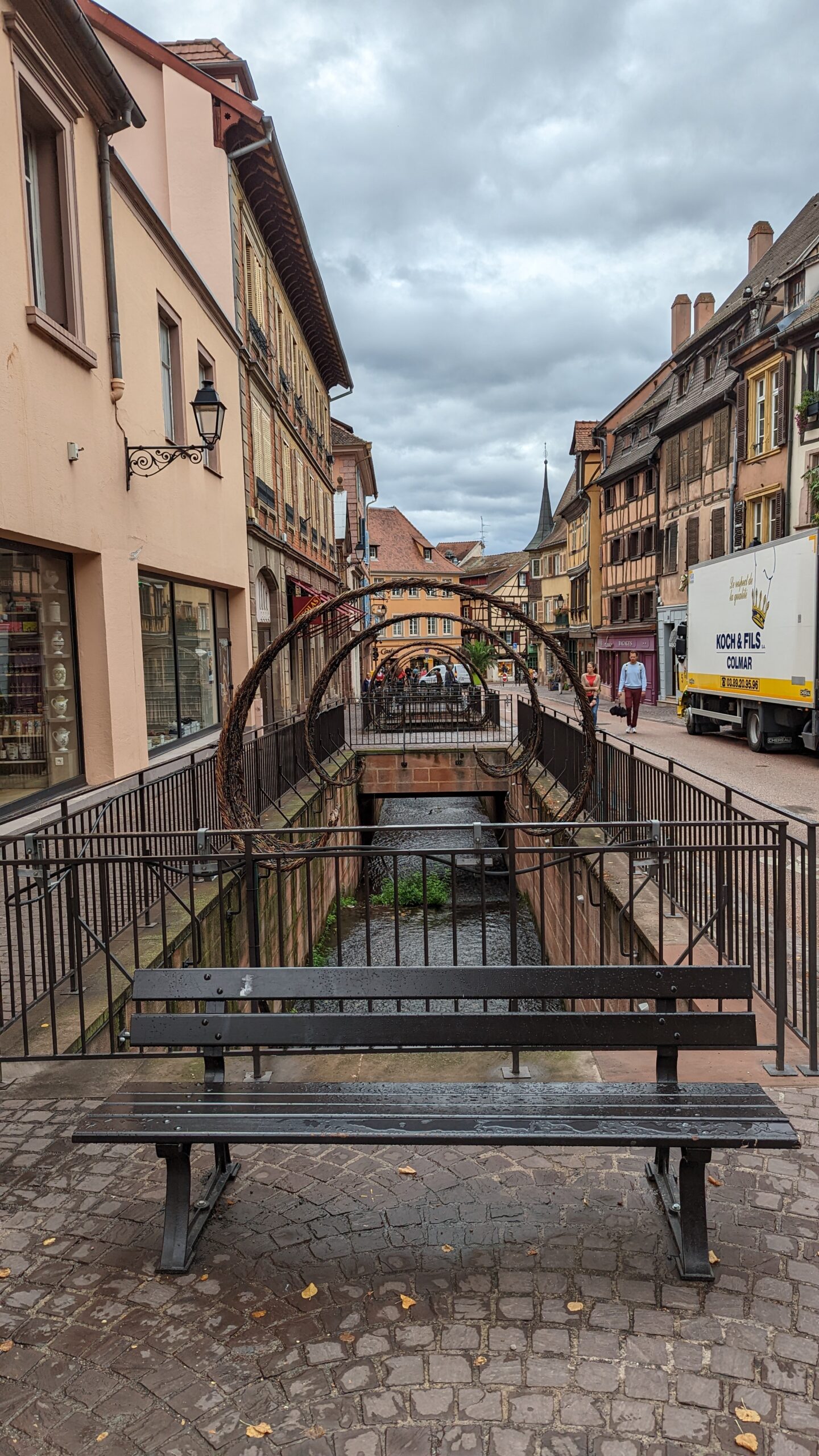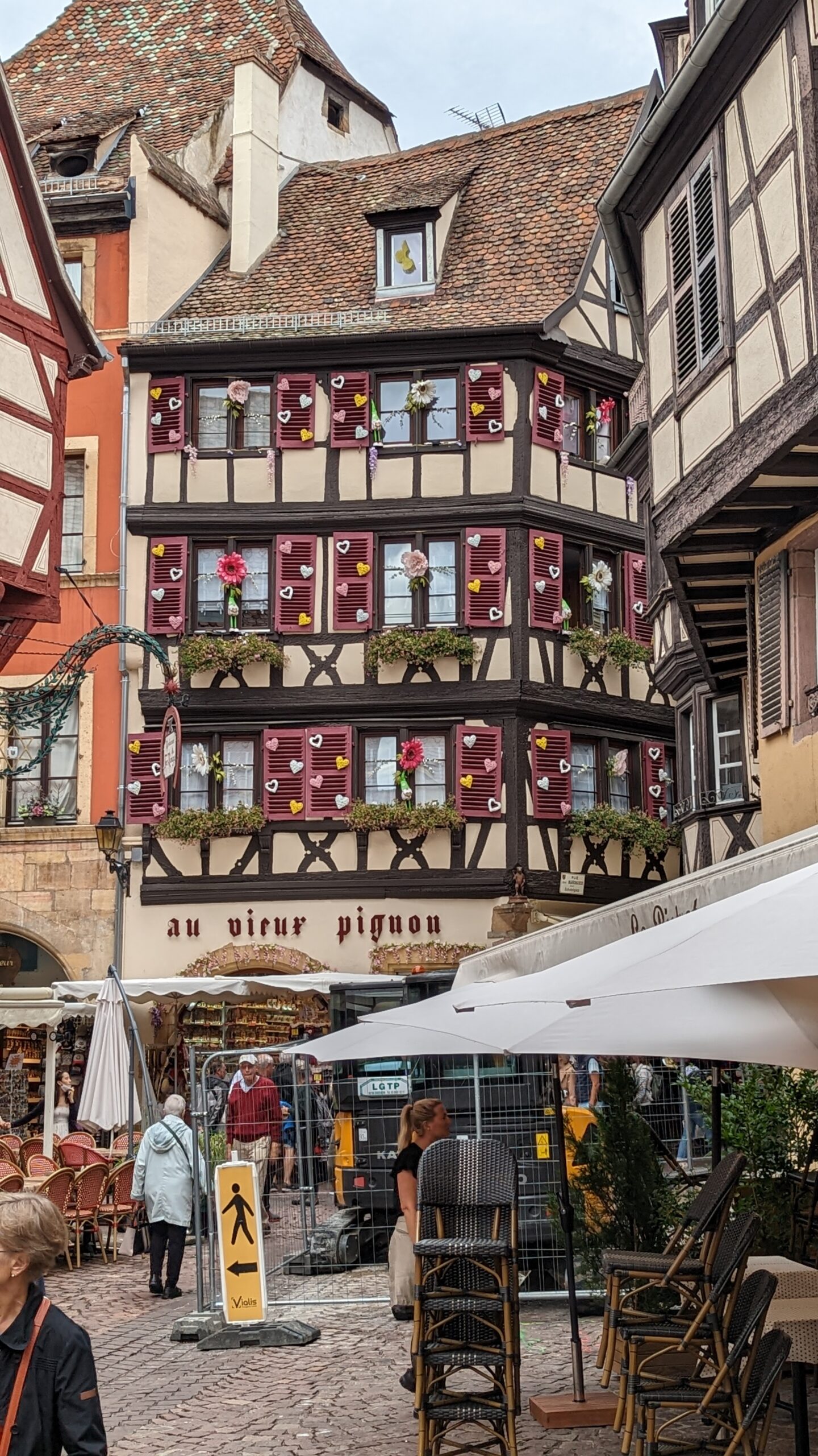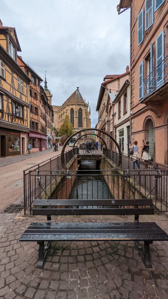In Colmar angekommen machten wir Lagebesprechung und entschieden uns, den Campingplatz abzusagen und stattdessen auf einen Wohnmobilstandplatz zu fahren, der zwar weniger Service hat, aber dafür näher an der Altstadt liegt. Wasser hatten wir noch genug, Strom auch – also kein Problem.