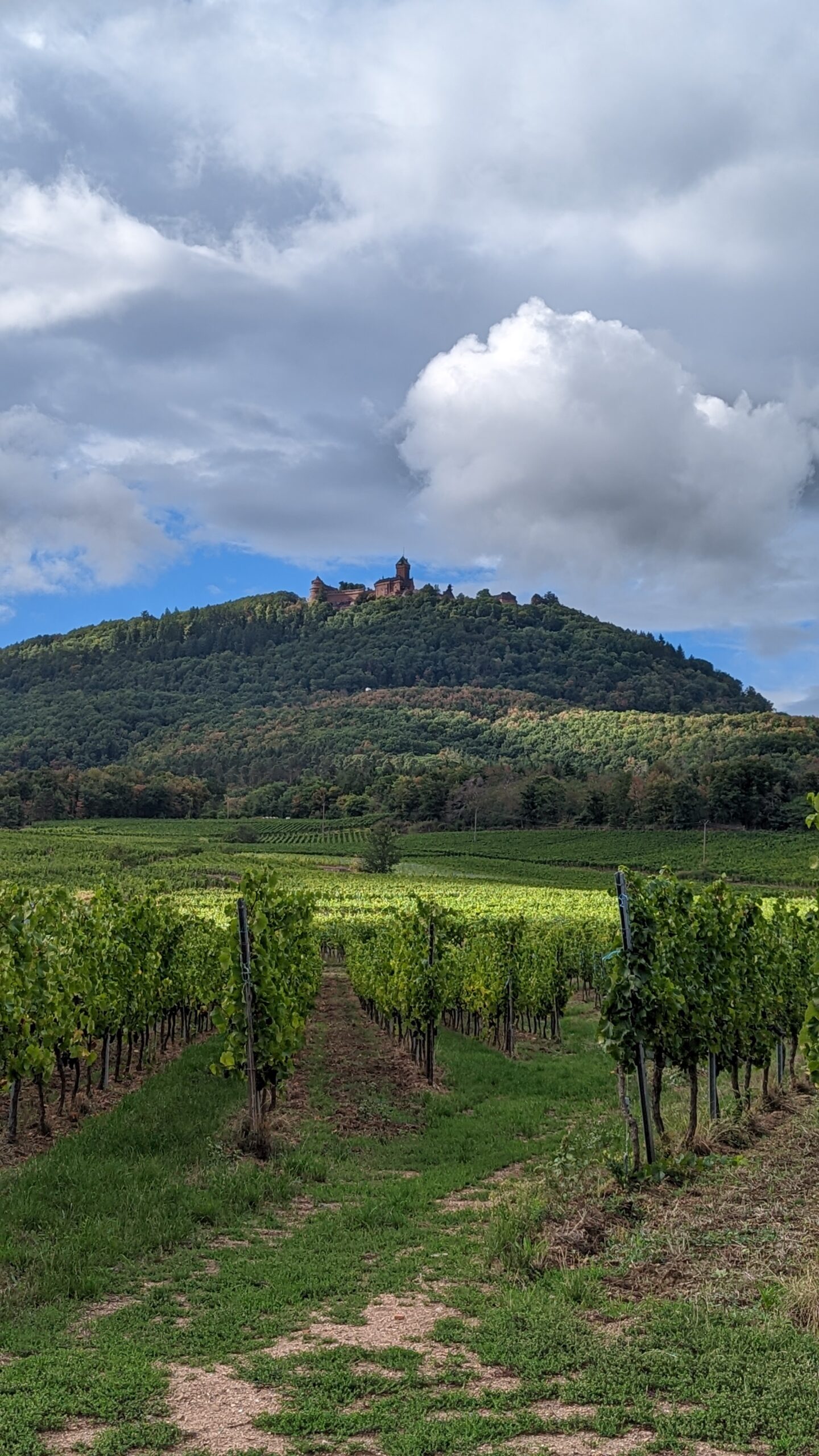 Nun ging es weiter auf einen Camperparkplatz bei Saint Hyppolyte, unterhalb der Burg Hochkönigsburg in den Weinbergen. Es war gut, dass wir schon um 16 Uhr dort waren, denn der Parkplatz füllte sich zunehmend und wir waren froh, noch einen Platz zu bekommen. Wir machten einen Spaziergang durchs Örtchen, dann gab es Nudeln mit Tomatensoße und einen gemütlichen Abend in der Berta.
